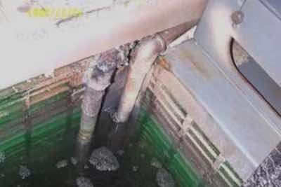 Figure 10 - Evidence of auxiliary equipment stray-current protocols being violated.The term stray current often is misused when an investigator is trying to capture some factors that cause problems such as pitting, burning, or arcing. Stray and leakage current refer to those electrical currents that flow along paths other than between the cathodes and the parts. The most relevant use of that phrase is as it relates to powered equipment, where the current is no longer confined to the unit. However, standard electrical protocols relating to use of grounding and dielectric unions should mitigate current leakage of this sort.34 Testing can be done using a clamp-on ammeter to measure the stray current levels in the safety ground network at selected points throughout the facility.