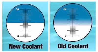 Figure 2 - Tramp oil makes reading a Brix Refractometer difficult.It has been reported that more than half of all occurrences of metallic corrosion have been related to contact with microorganisms.8 In metal finishing operations, coolants that are not well maintained are often first noticed when they emit an odor similar to rotten eggs. This is attributable to small amounts of hydrogen sulfide released as a byproduct of the enzymatic action of sulfate-reducing bacteria (SRB).9 Further evidence of coolants that are not well maintained is analysis of the coolant concentration using a Brix refractometer. A reading that fails to show a clear line is an indication the coolant is inundated with tramp oils (Fig. 2).