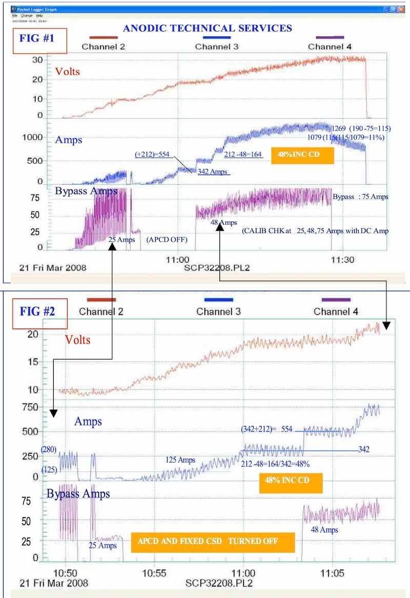 - The 50-150 amps at 4-9 volts is strictly due to APCD. This represents 10% of the total process run, which simply would not be there without APCD.