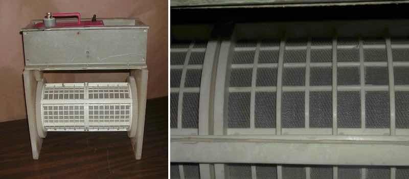 This barrel yielded dragout losses similar to Barrel 1, dragging out and average of 142 mL per use. This barrel had the identical frame and gears as Barrels 2 and 3. However, the barrel itself was constructed of a very fine, replaceable, woven mesh. Even with similar areas or wetted surface due to the large frame and the two large gears, this barrel outperformed drilled holes.