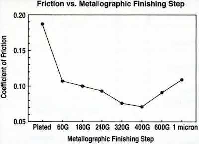 The die friction would be influenced by the surface morphology of the hard chromium. That morphology would in turn be influenced by the original surface condition of the steel substrate. Early work had indicated that differences in friction resulted from different surface finishes.