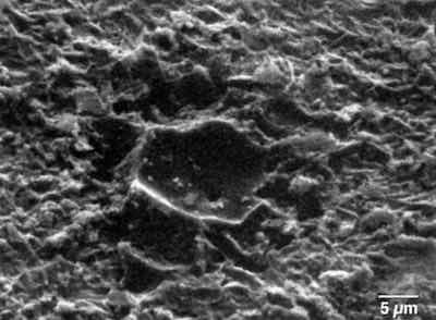 Figure 9 - Rupture site with paint removed (SEM: 1000×)The defect in question was a microscopic rupture in the surface of the final topcoat color finish.8 While in and of itself quite small, on a high-gloss paint finish, its visual effect was far out of proportion to its size. Exhaustive metallographic analysis traced each of these defects down to a flaw in the surface of the steel. During the final rolling and annealing process, an excess of particulates in the lubricating media led to small pits, or pockets in the steel surface, which ultimately trapped some of the lubricating oils. Like a virus, these small sites lay dormant through the electrogalvanizing, forming and phosphating processes. When exposed to the curing temperatures of 160°C for the primer and paint, problems began.