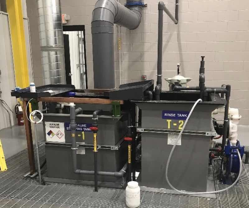 Most stripping operations use a process cycle similar to what’s used for plating. This can vary with the base metal and metallurgy involved, but the following is typical: