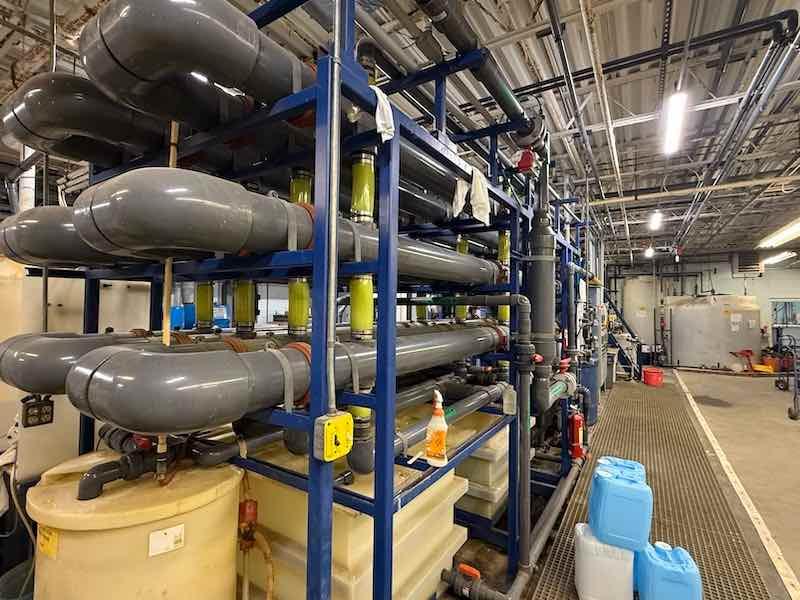 The room that holds the lines is 65 feet long and made entirely of plastic to help stop building erosion. Even the suspended ceiling is made of plastic, as are the walls. And it’s all because of the aggressive acids of the process, which Duffy says will eventually take their toll on the building structure if protective measures are not taken.