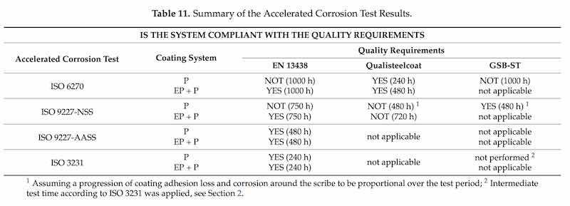 Table 11: Summary of the Accelerated Corrosion Test Results.