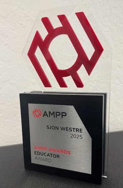 Dr. Sjon WestreThis esteemed award celebrates industry educators who demonstrate exceptional commitment to advancing materials and corrosion protection knowledge through innovative training, mentorship, and skill development in a non-academic environment.