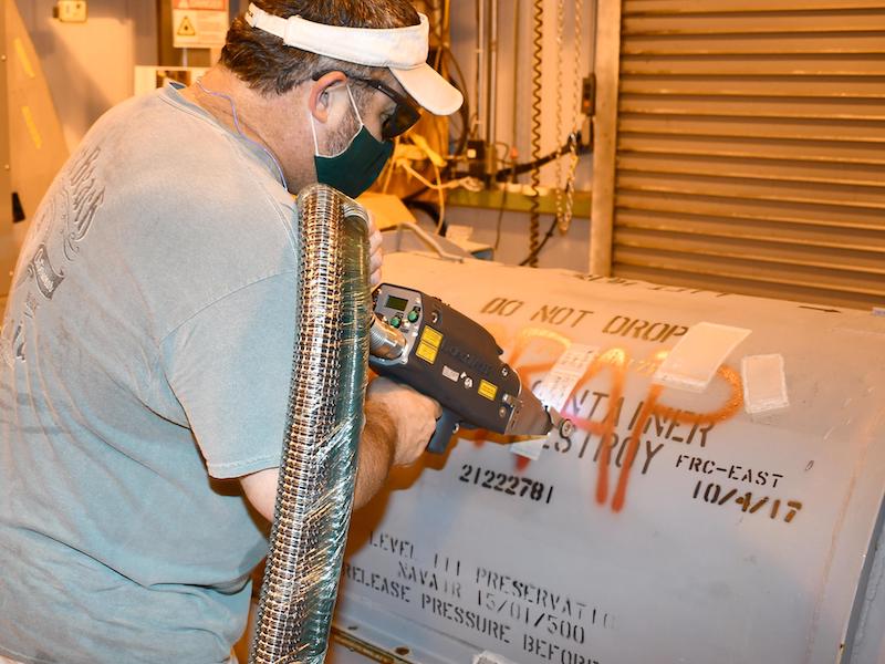 Personnel from FRCE’s packaging and preservation shop were the first to try the laser ablation system, and they gave it high marks for efficiency, safety and cost-effectiveness.