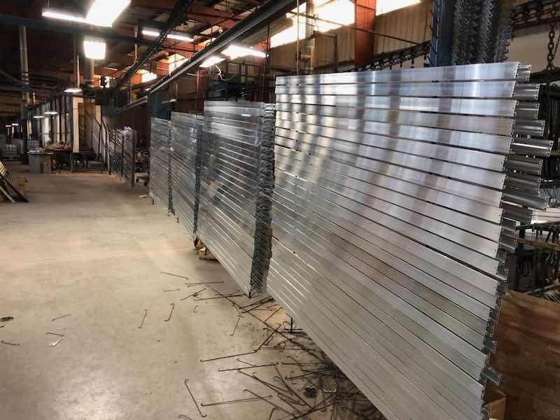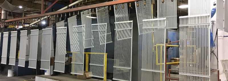 Pompano only uses liquid Kynar finishes, and Sarasota uses all the finishes, including powder coating, sublimation, lamination, and vinyl profile wrapping. The facility can powder coat large structures up to 50 feet long, 10 feet wide, and 10 feet tall.